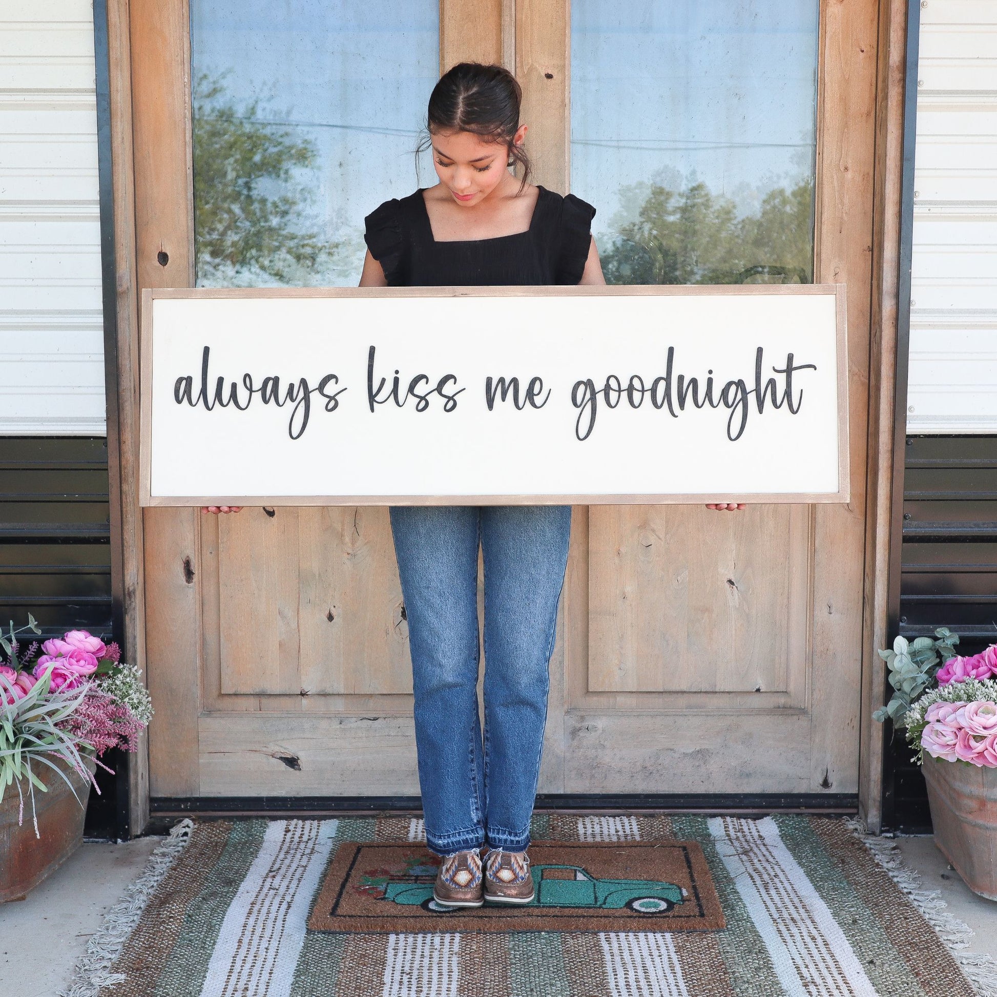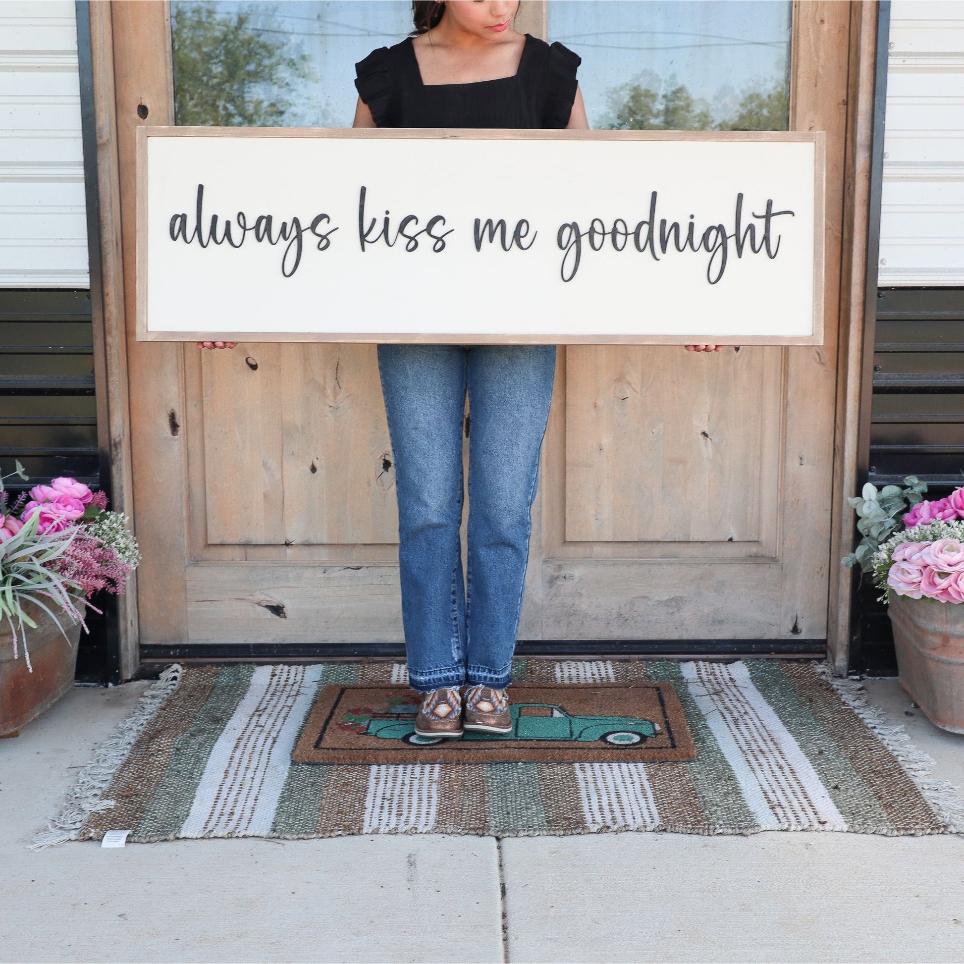 Always Kiss Me Goodnight Wooden Sign 48x15