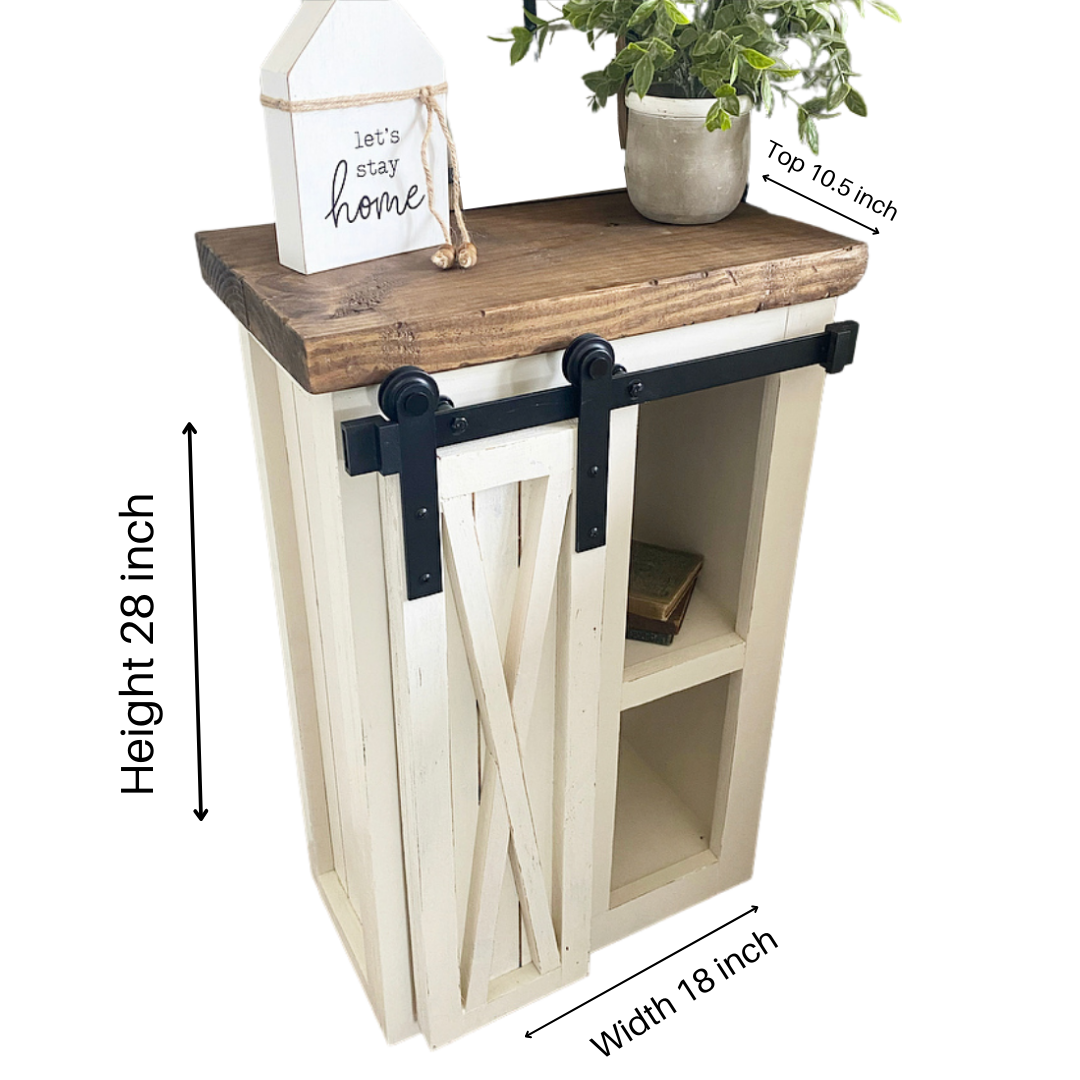 - The Bella Nightstand with Storage Cabinet provides function and style with decorative charm. The rustic wooden finish and sliding barn door adds a quirky addition to your home decor